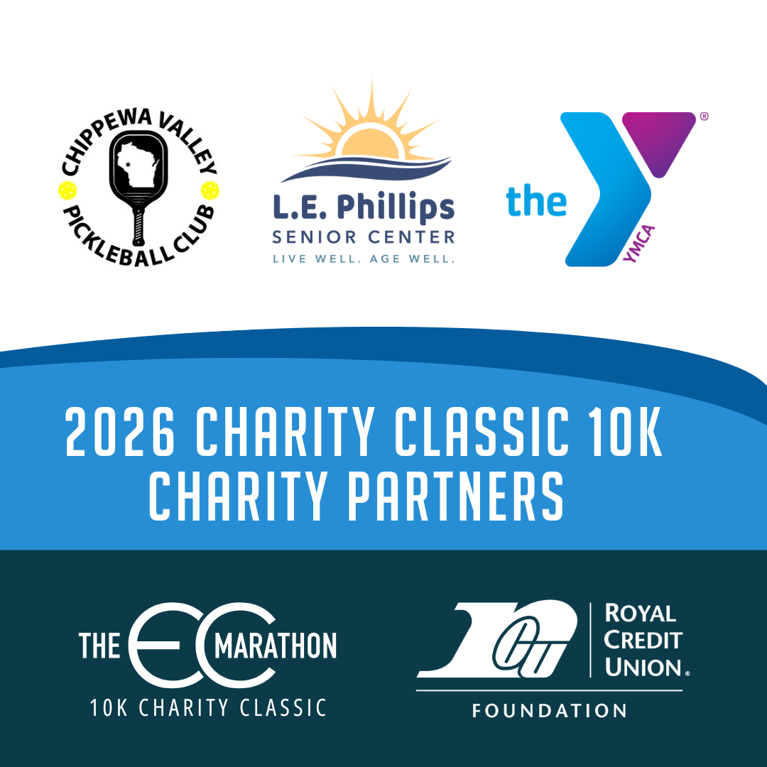 We are excited to announce the three area nonprofit organizations that will benefit from the 2026 10K Charity Classic presented by Royal Credit Union. Chippewa Valley Pickleball Club, L.E. Phillips Senior Center, and YMCA of the Chippewa Valley were selected by the Eau Claire Marathon and the Royal Credit Union Foundation to be the beneficiaries of the 10K Charity Classic race held on Saturday, May 2nd 2026. The RCU Foundation has pledged $15,000 to the organizations which are selected on a rotating annual basis.