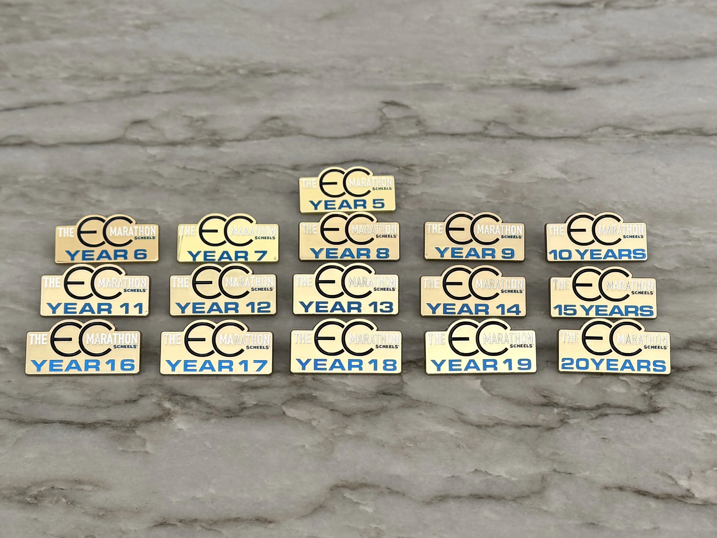On race weekend, stop at the awards tent, give your name, and the year you just completed, proudly put your legacy pin on your finisher’s ribbon!