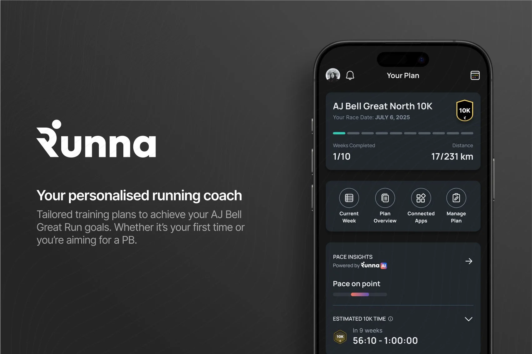 Take your running journey to the next level with Runna! Whether you're aiming for your first marathon or a faster 5K, our personalized training plans guide you every step of the way. Runna is about more than just miles – we develop every aspect of your running including: