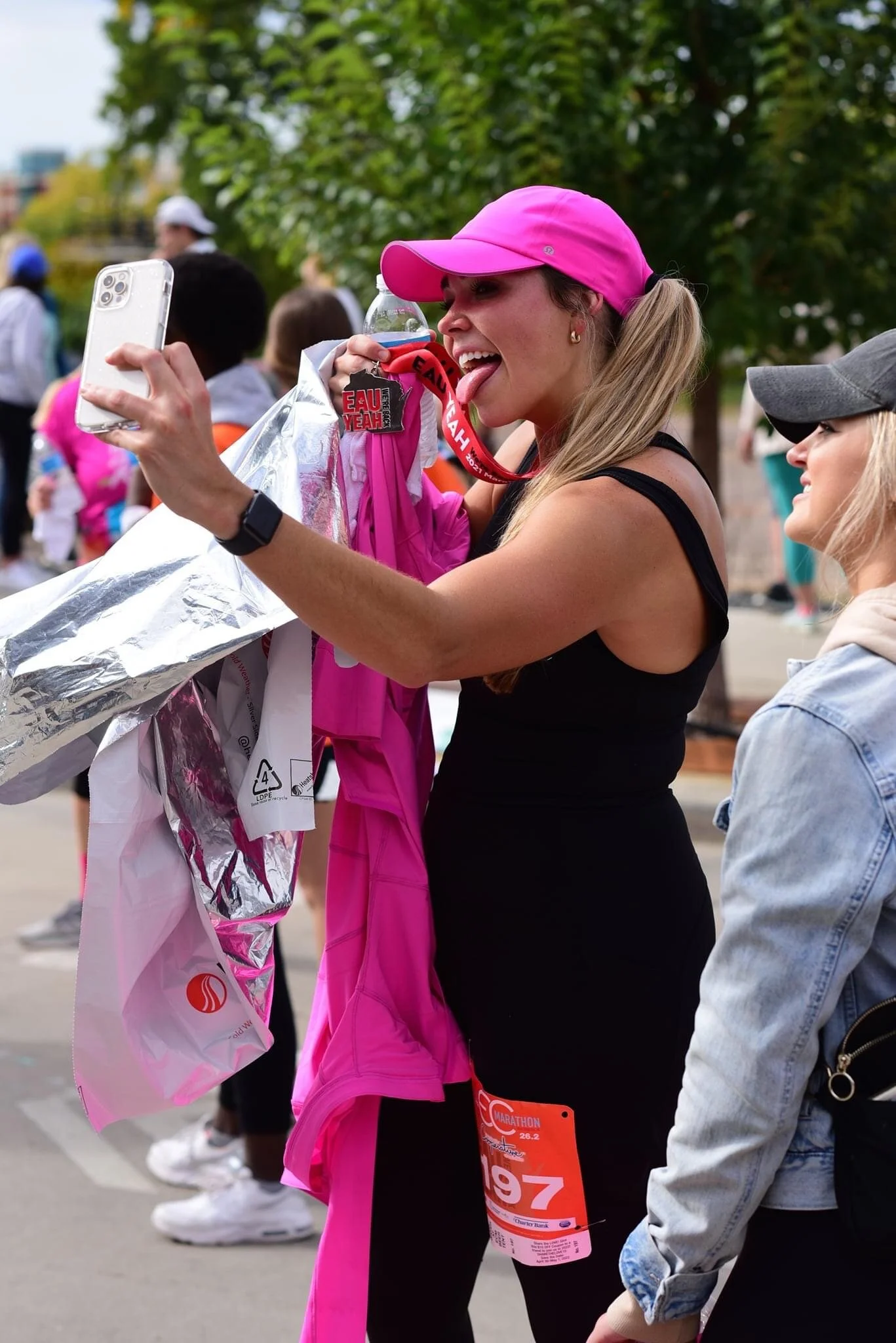 Make sure to grab a photo with your medal at the HUEBSCH finish line photo op station!