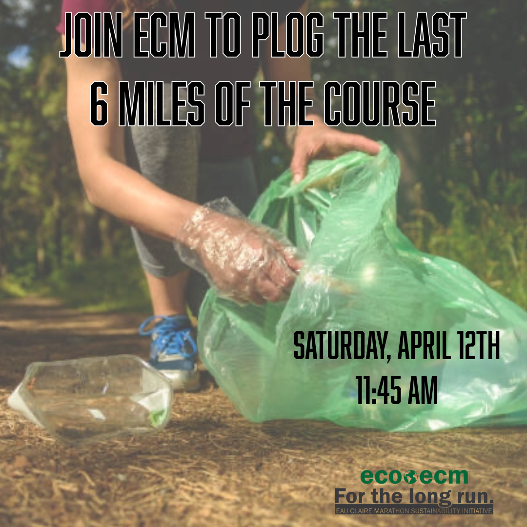 Letβs give back to the course that gives us so much! Join us on Saturday, April 15th, at 11:45 AM as we PLOG (pick up litter while jogging) the last 6 miles of the Eau Claire Marathon course.